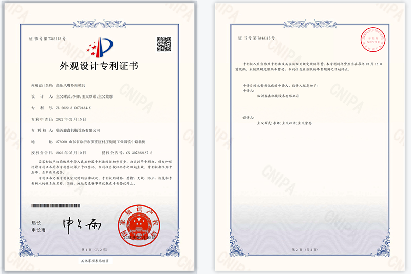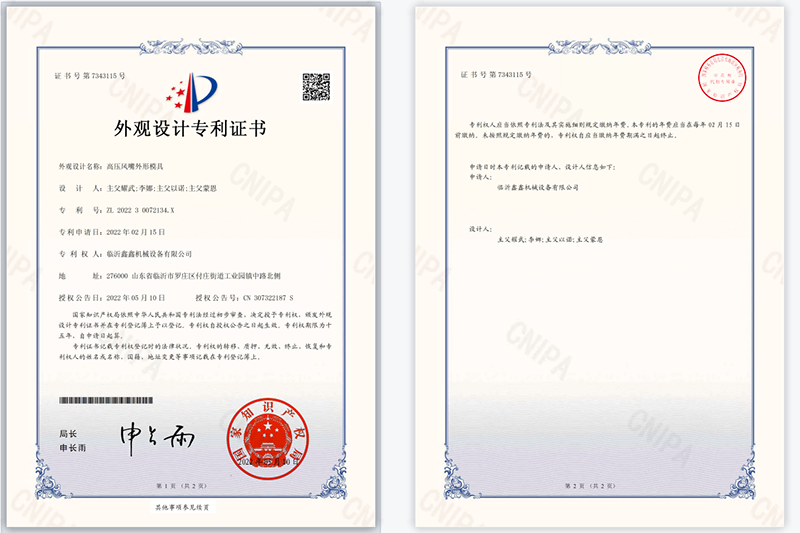 高壓風(fēng)嘴模具-外觀設(shè)計(jì)專(zhuān)利證書(shū)(簽章)